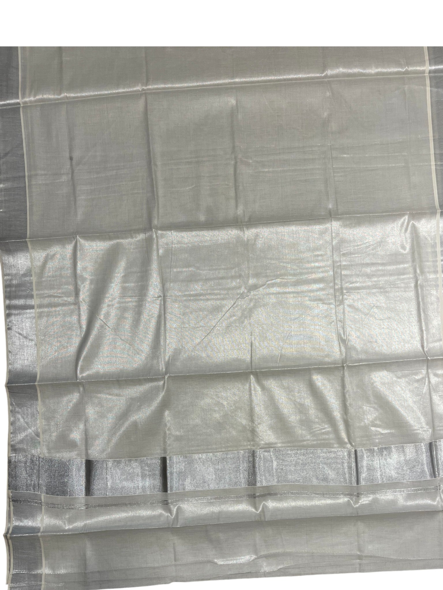 Southloom Silver Kasavu Tissue Plain Kerala Saree