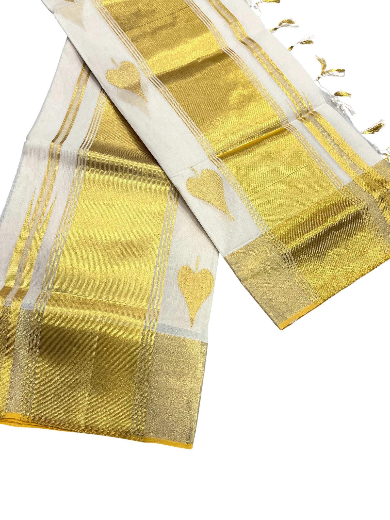 This is an authentic Southloom branded Handloom Set Mund woven by one of our master weavers. The village has been renowned throughout centuries for the fine pieces of traditional attire that it churns out.