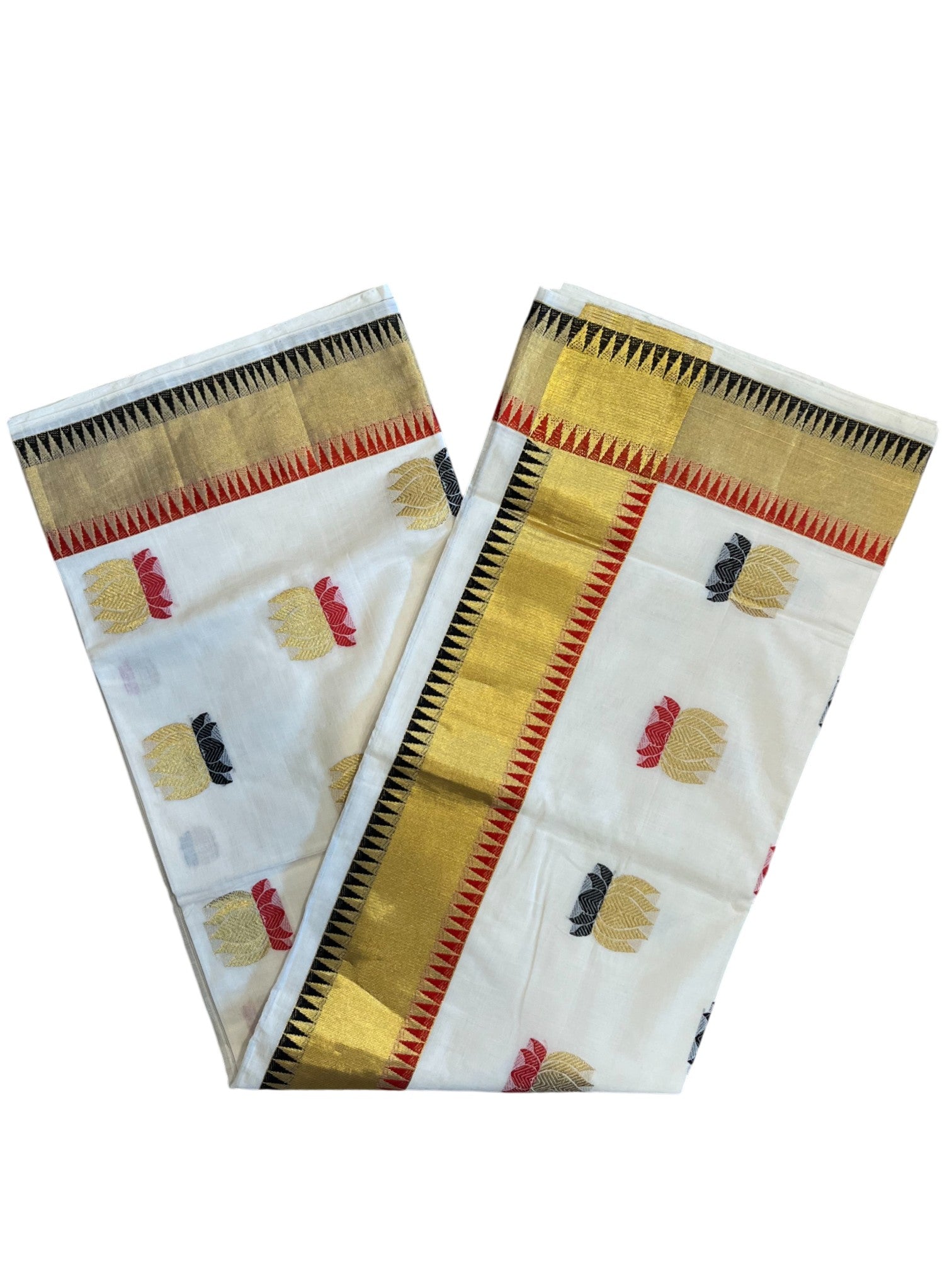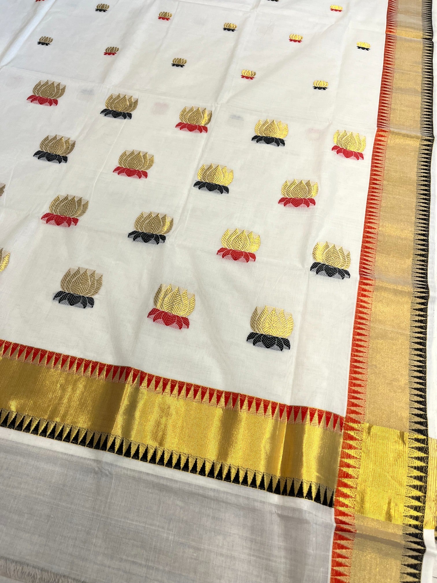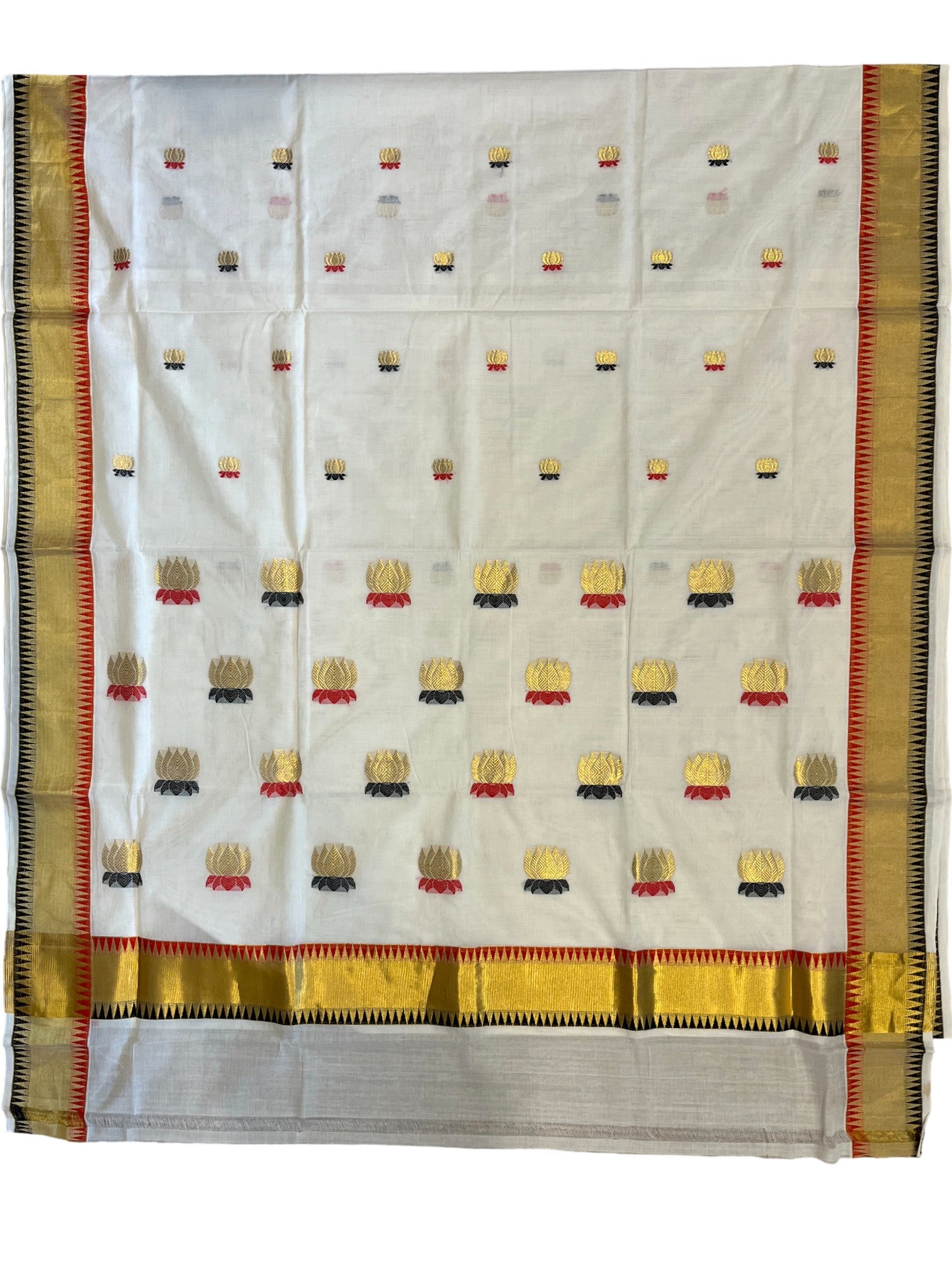 Southloom Super Premium Balaramapuram Unakkupaavu Handloom Cotton Saree with Lotus Woven Work on Body with Temple Border