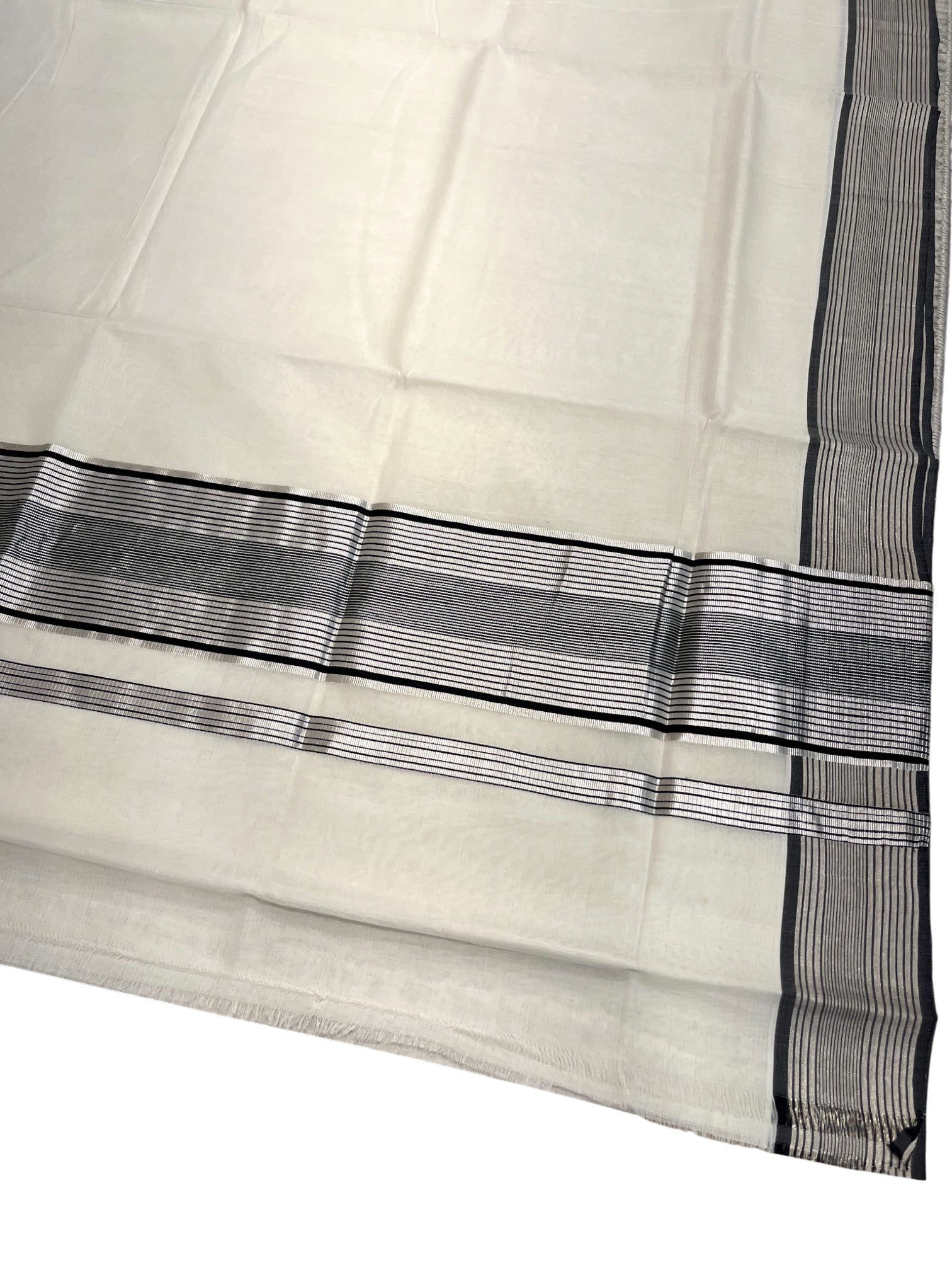 Southloom Super Premium Balaramapuram Unakkupaavu Handloom Cotton Saree with Silver and Black Border