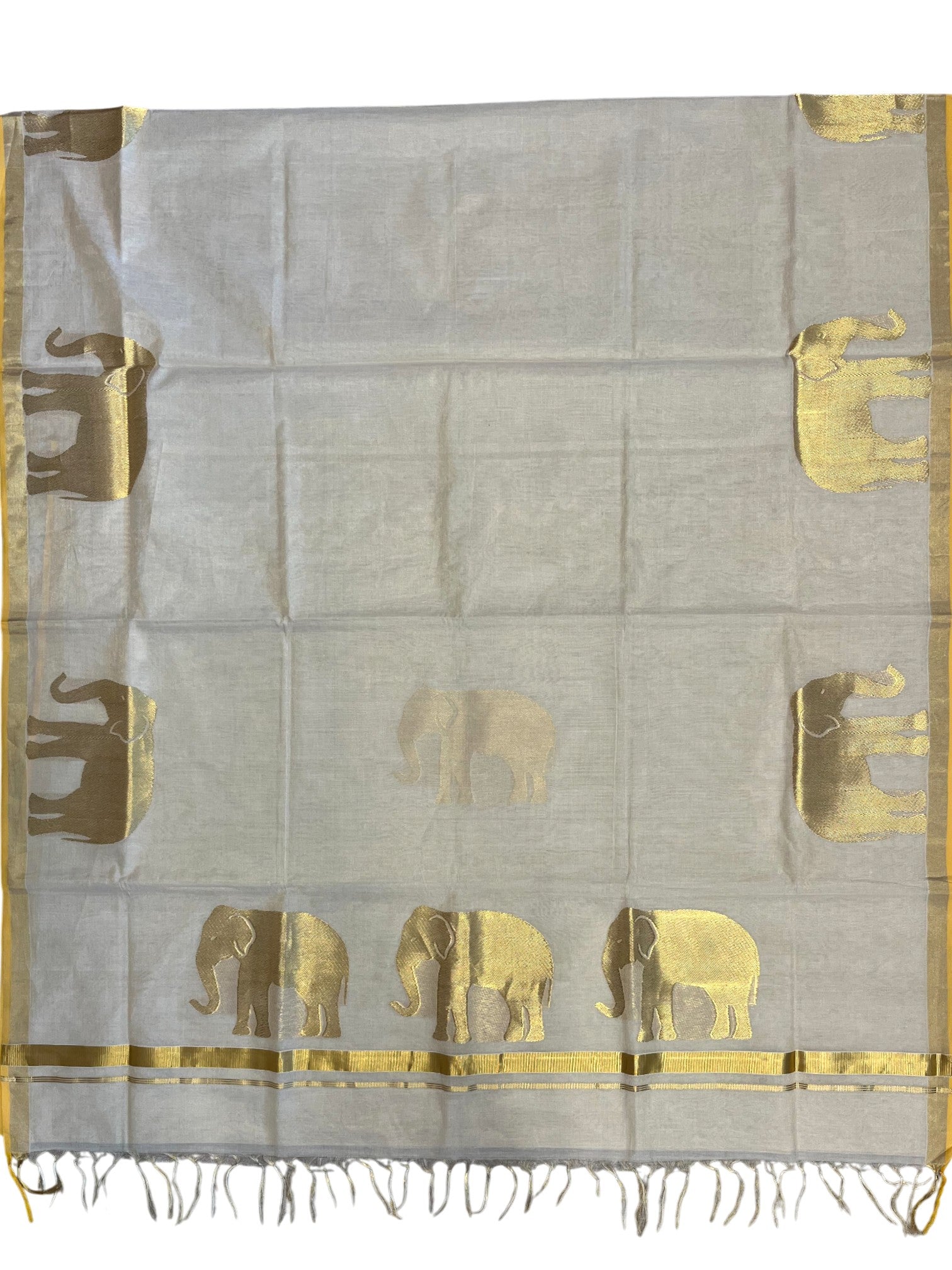 Southloom Super Premium Balaramapuram Unakkupaavu Handloom Tissue Saree with Elephant Woven Design on Body and Border