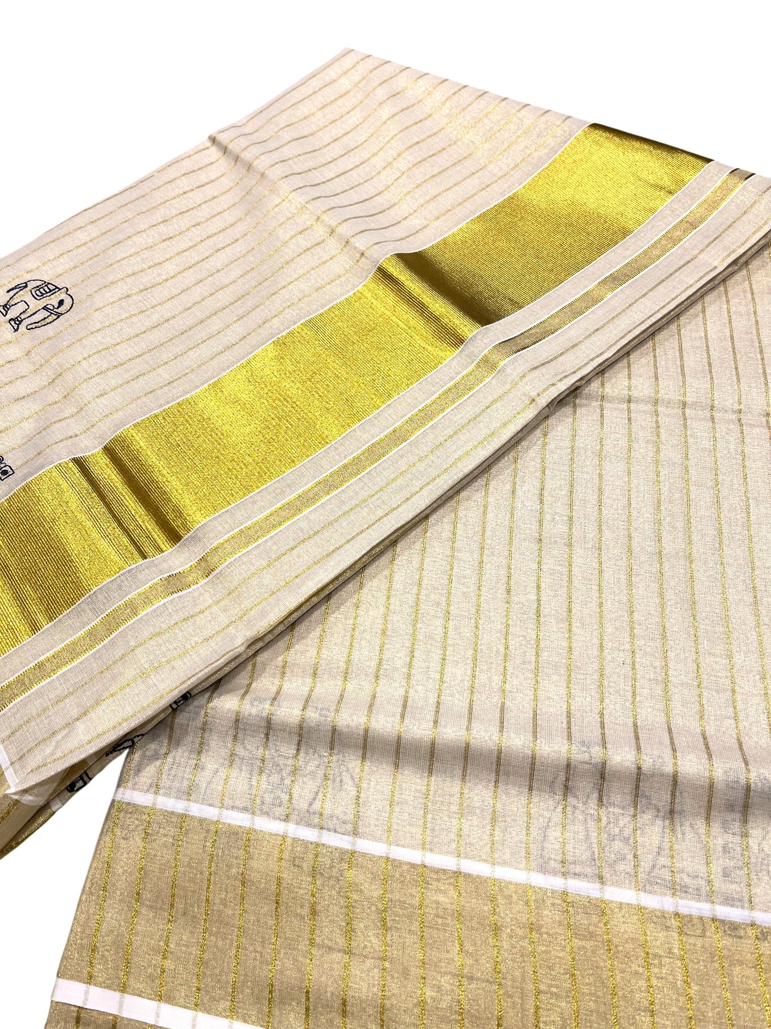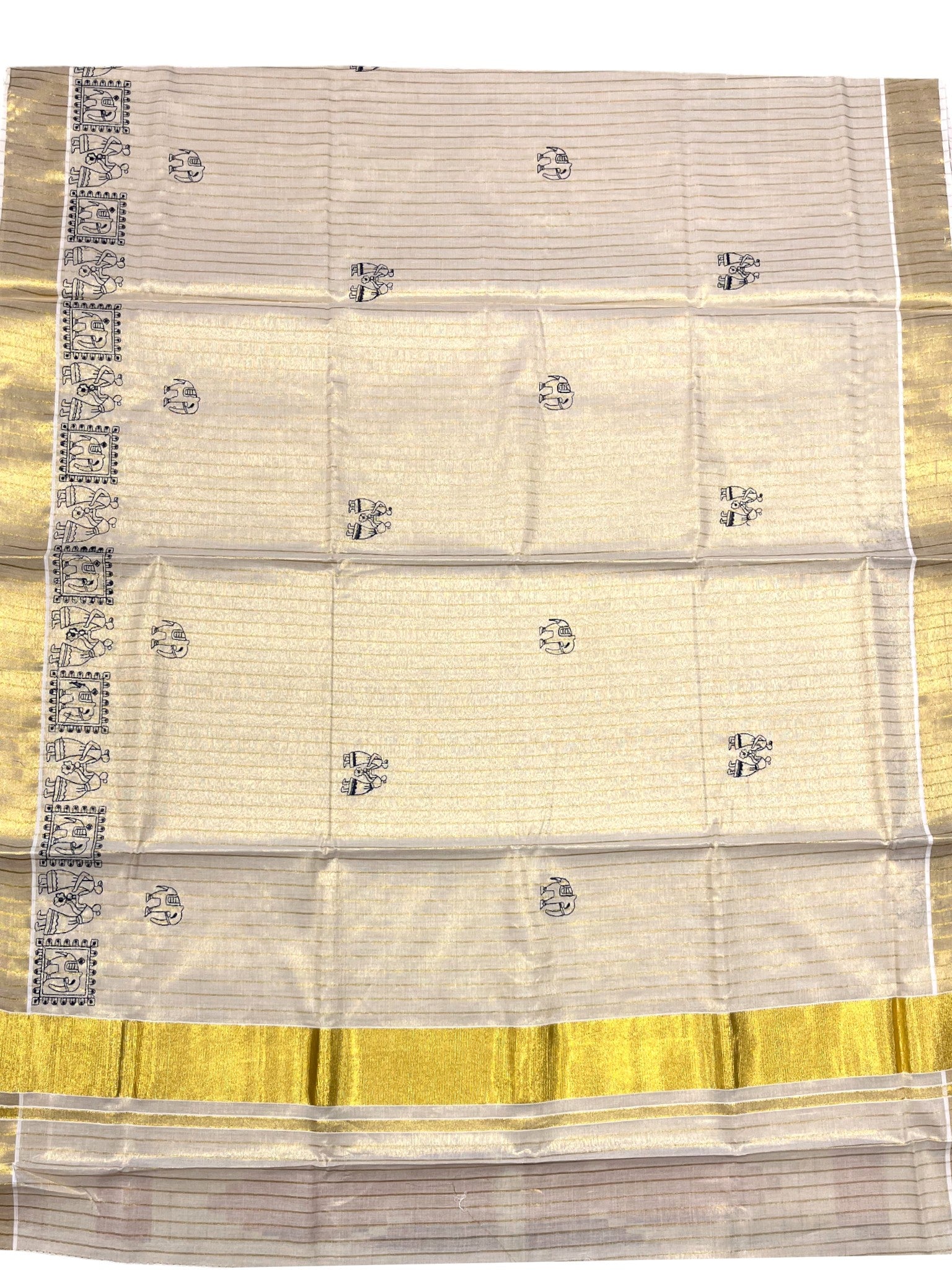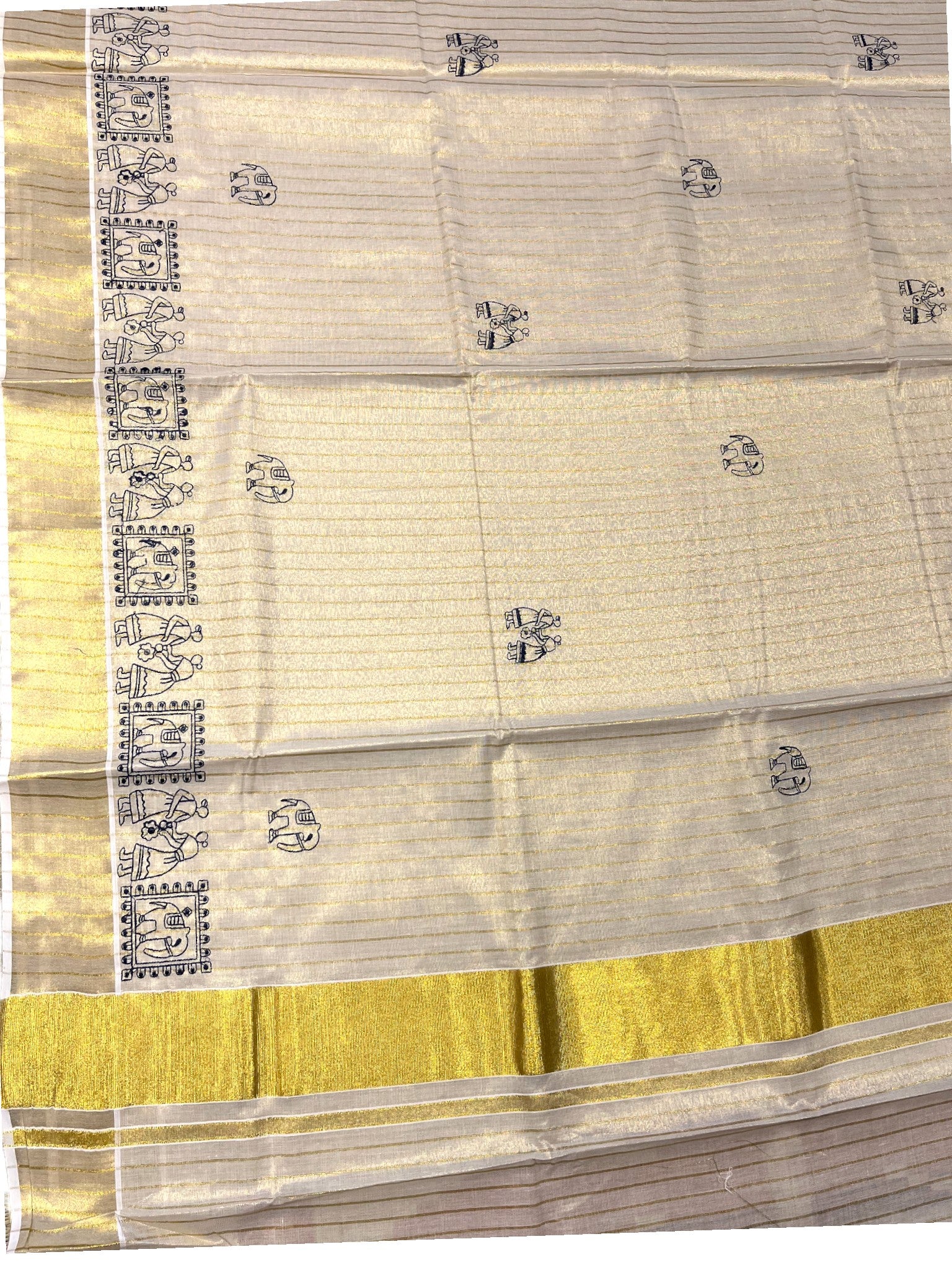 Southloom Tissue Kerala Kasavu Saree with Embroidery Design
