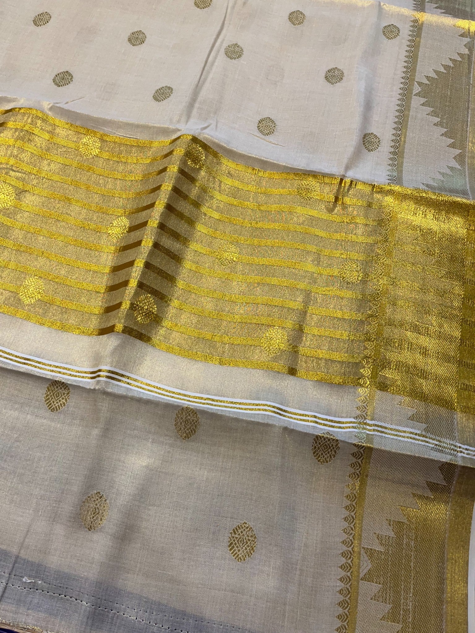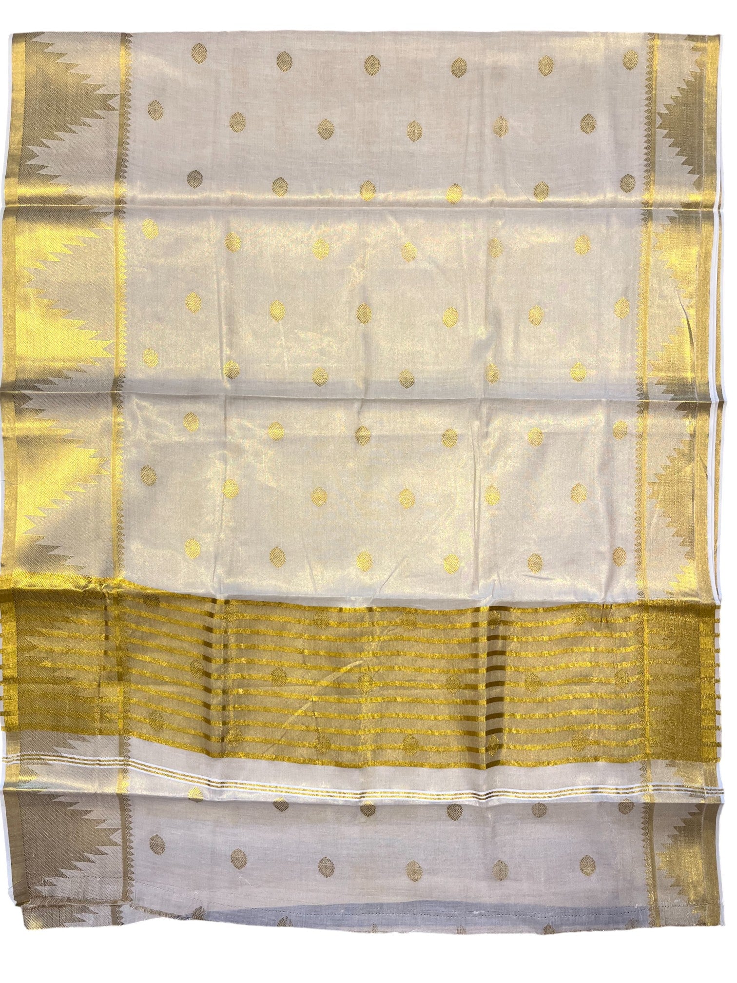 Southloom Tissue Kasavu Saree with Woven Butta Works Across Body and Temple Border