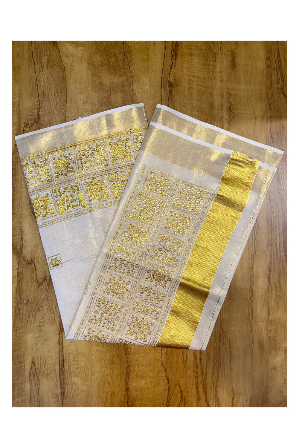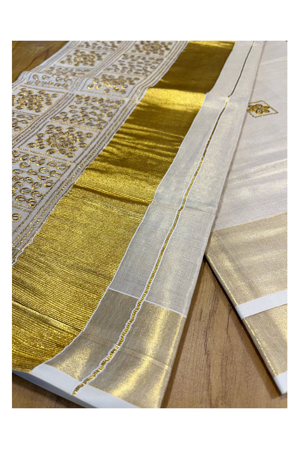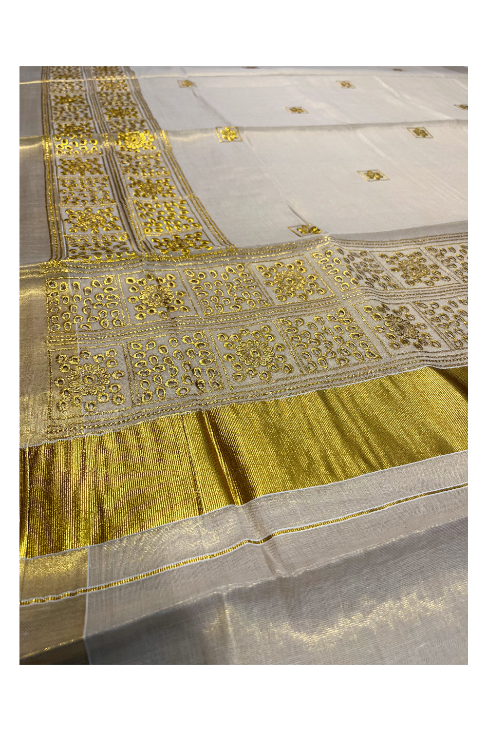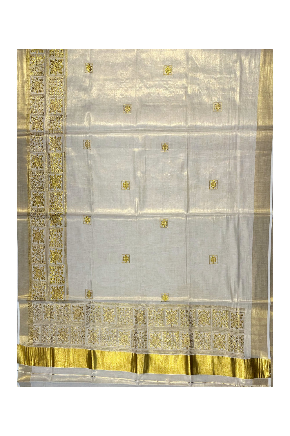 Southloom Tissue Kasavu Saree with Golden Embroidery Work