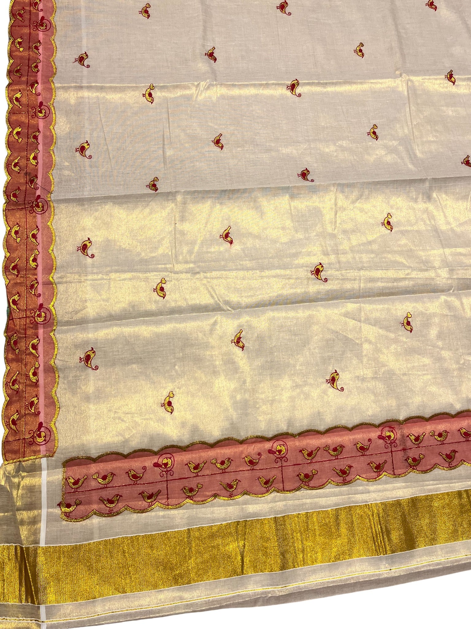 Southloom Tissue Kerala Kasavu Saree with Embroidery Design