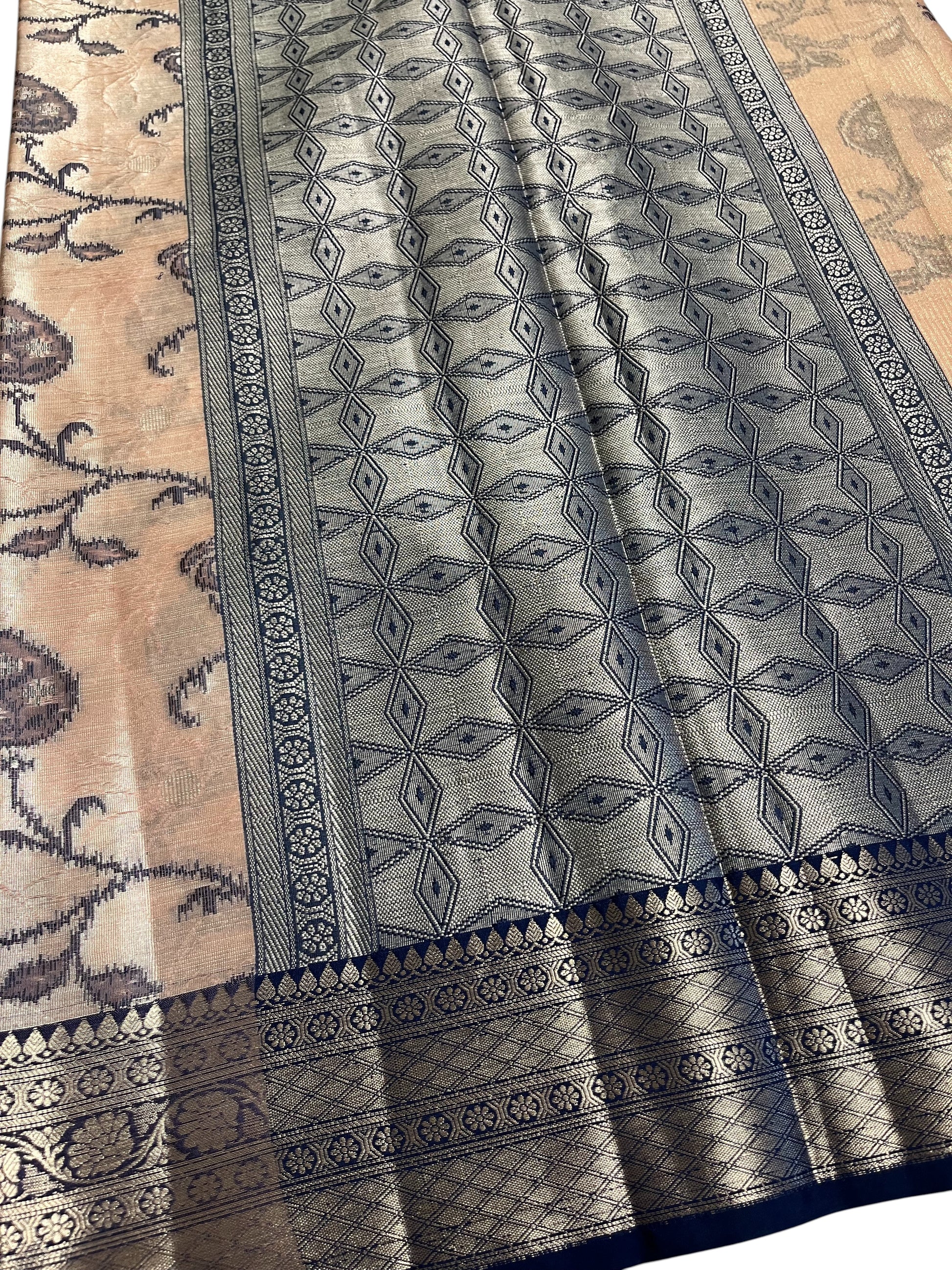 Southloom Tissue Silk Saree with Woven Work on Body and Borders (Peach & Blue)