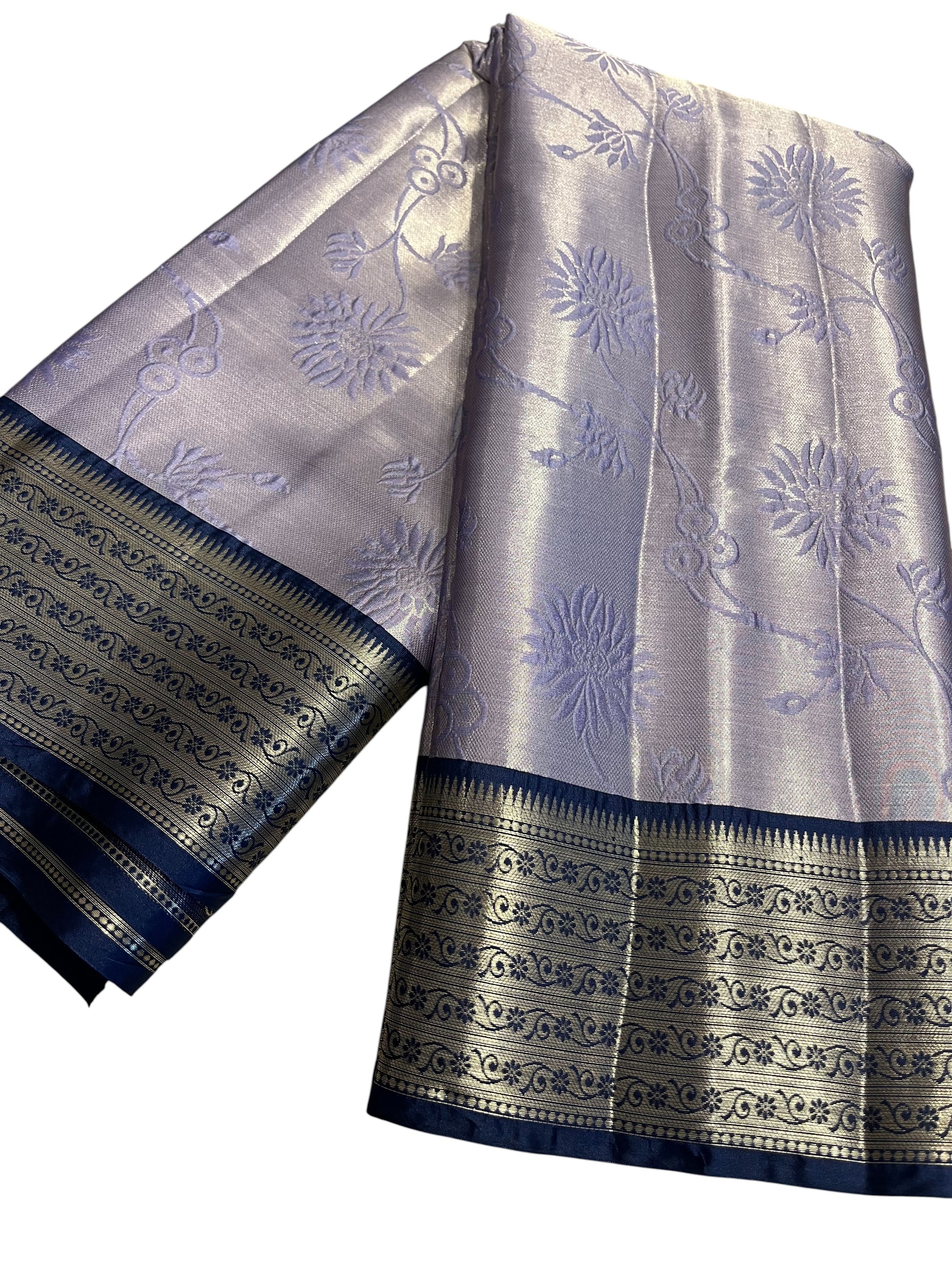 Southloom Tissue Silk Saree with Woven Work on Body and Borders (Blue & Lavendar)