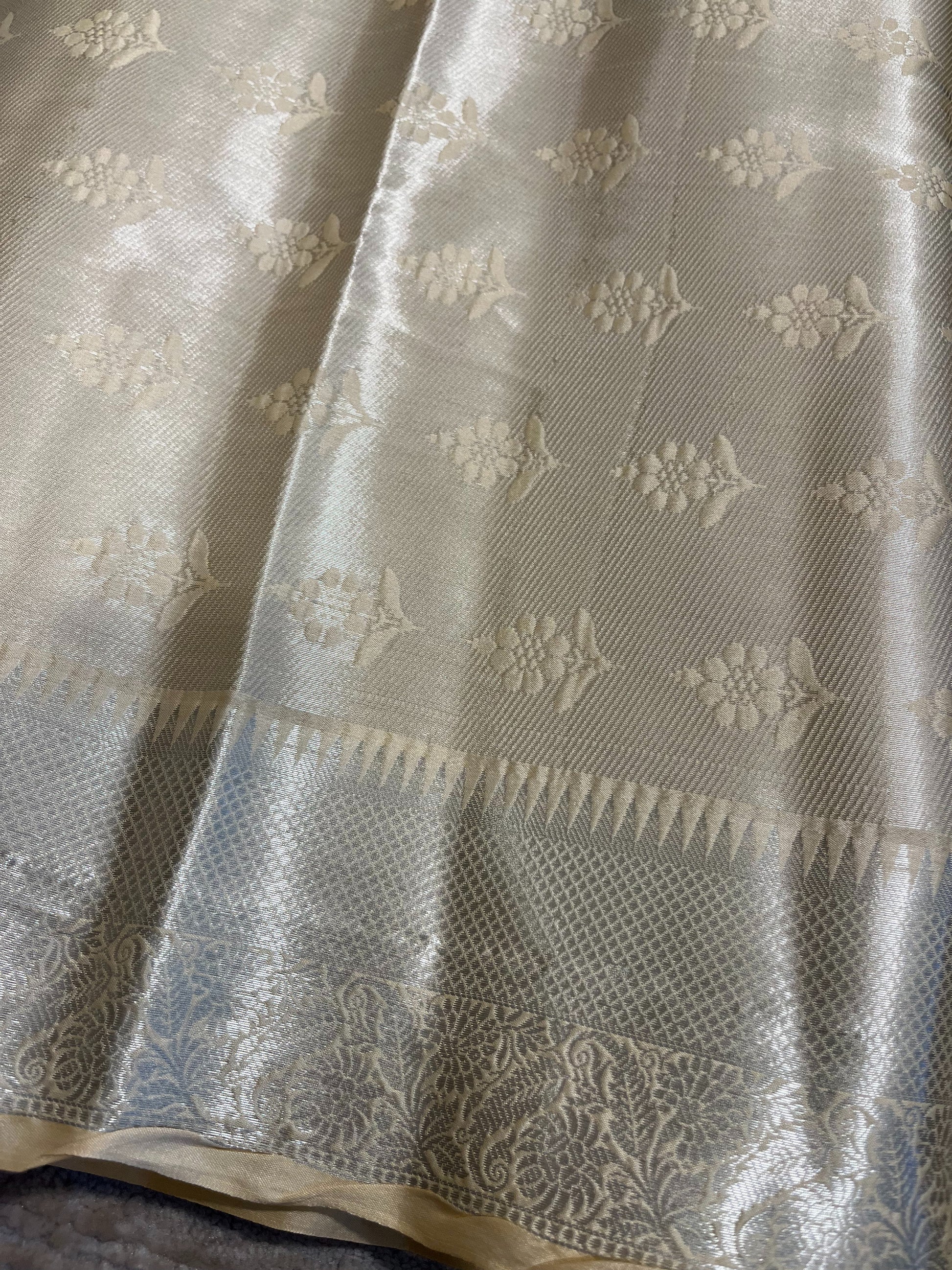Southloom Tissue Silk Saree with Woven Work on Body and Borders (Golden & Yellow)