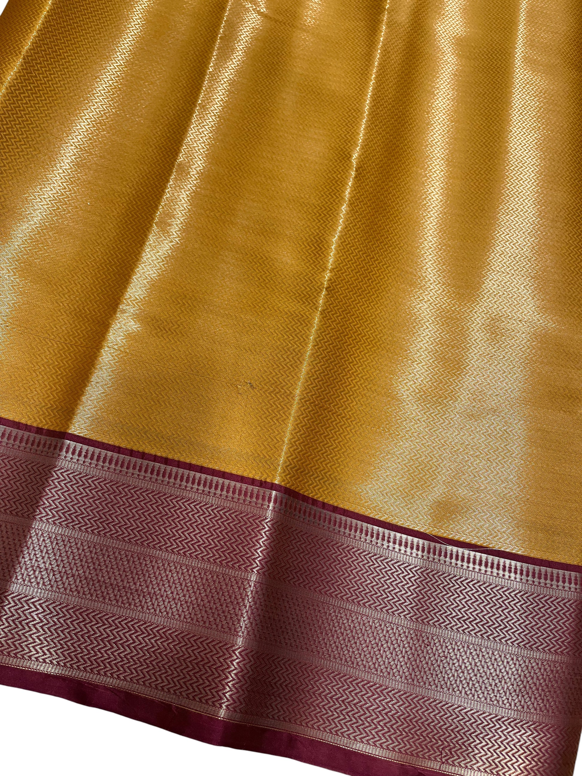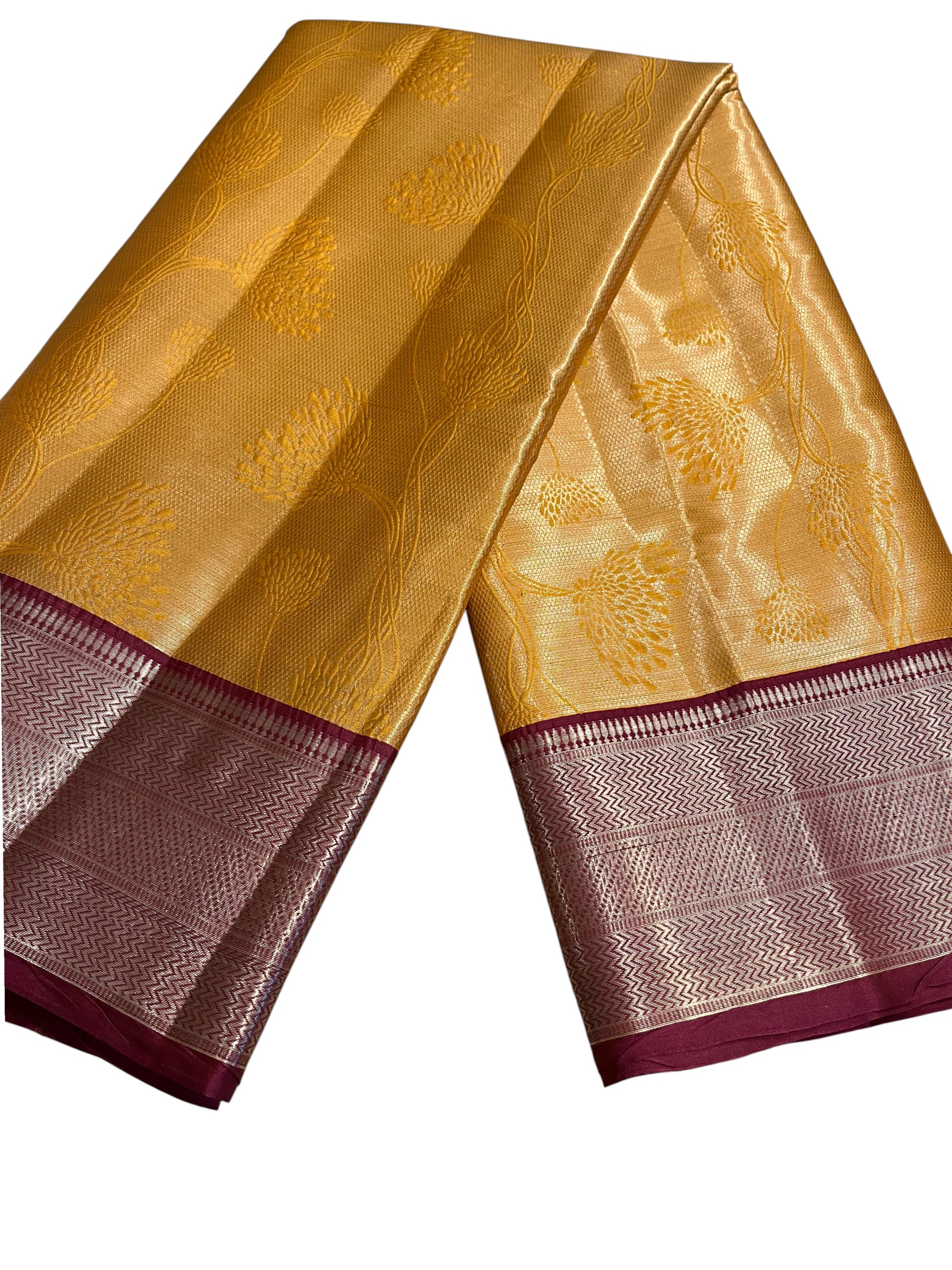 Southloom Tissue Silk Saree with Woven Work on Body and Borders (Golden & Magenta)