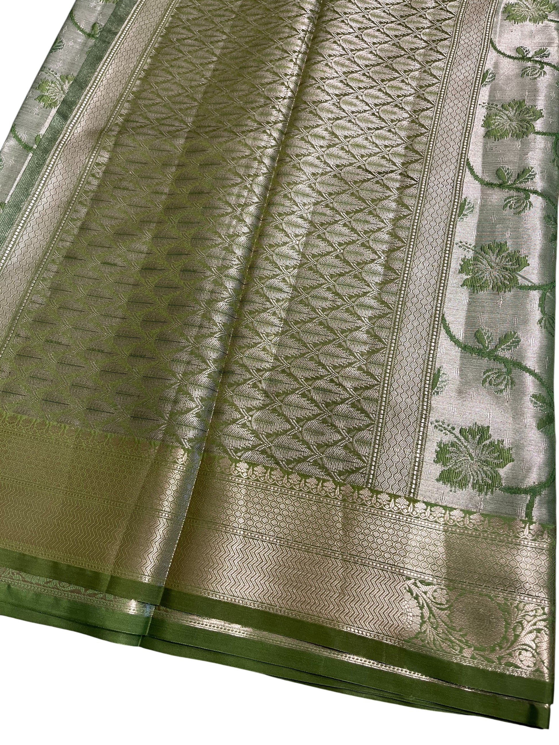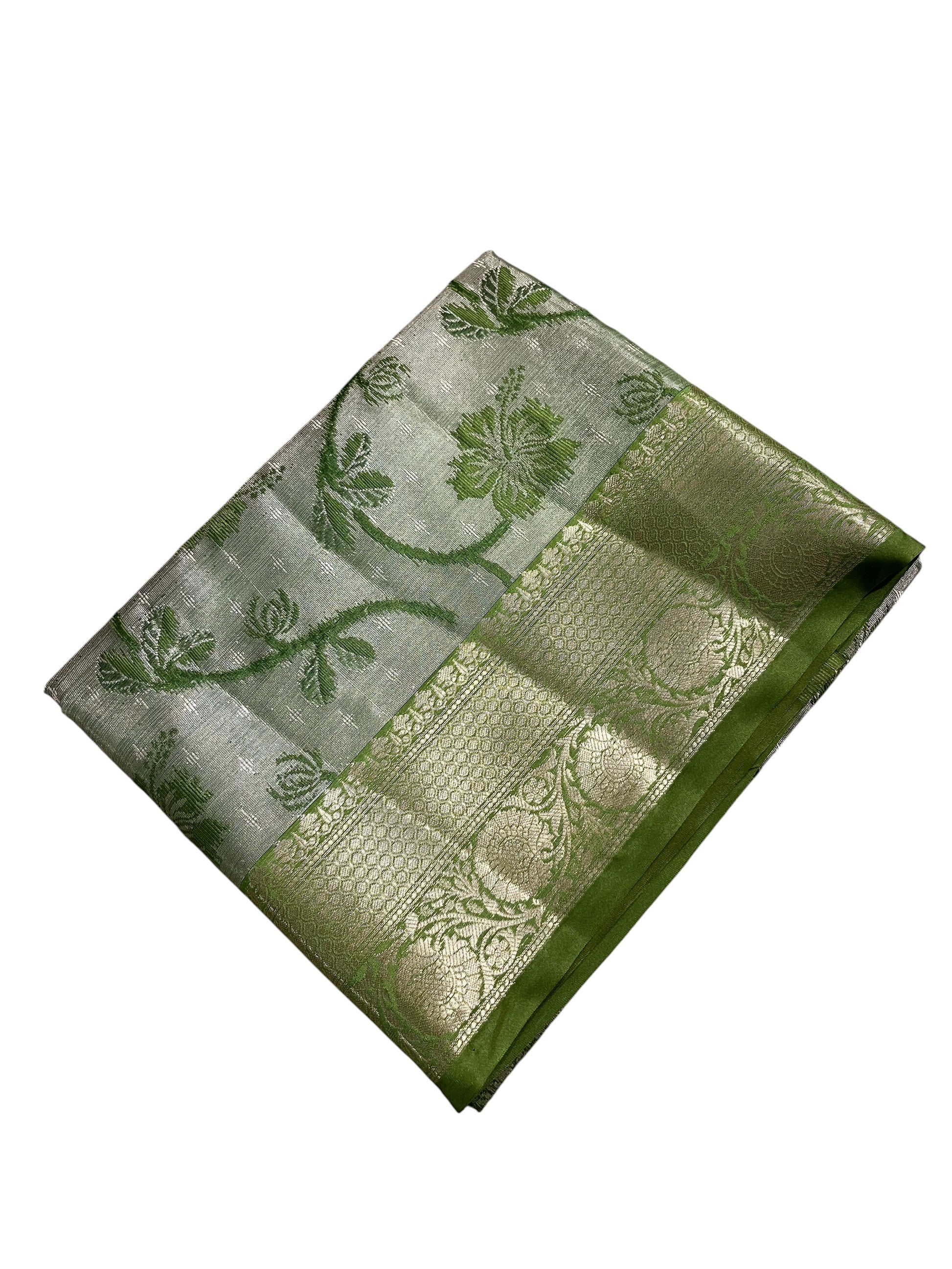 Southloom Tissue Silk Saree with Woven Work on Body and Borders (Green)