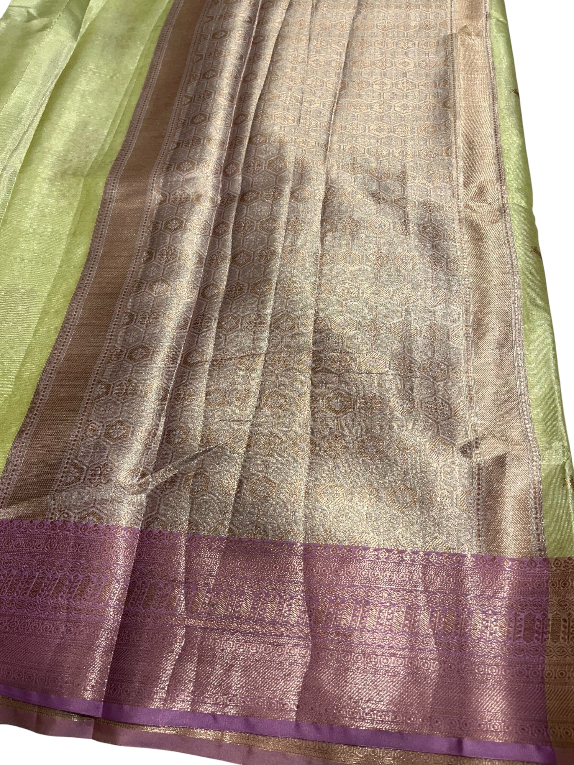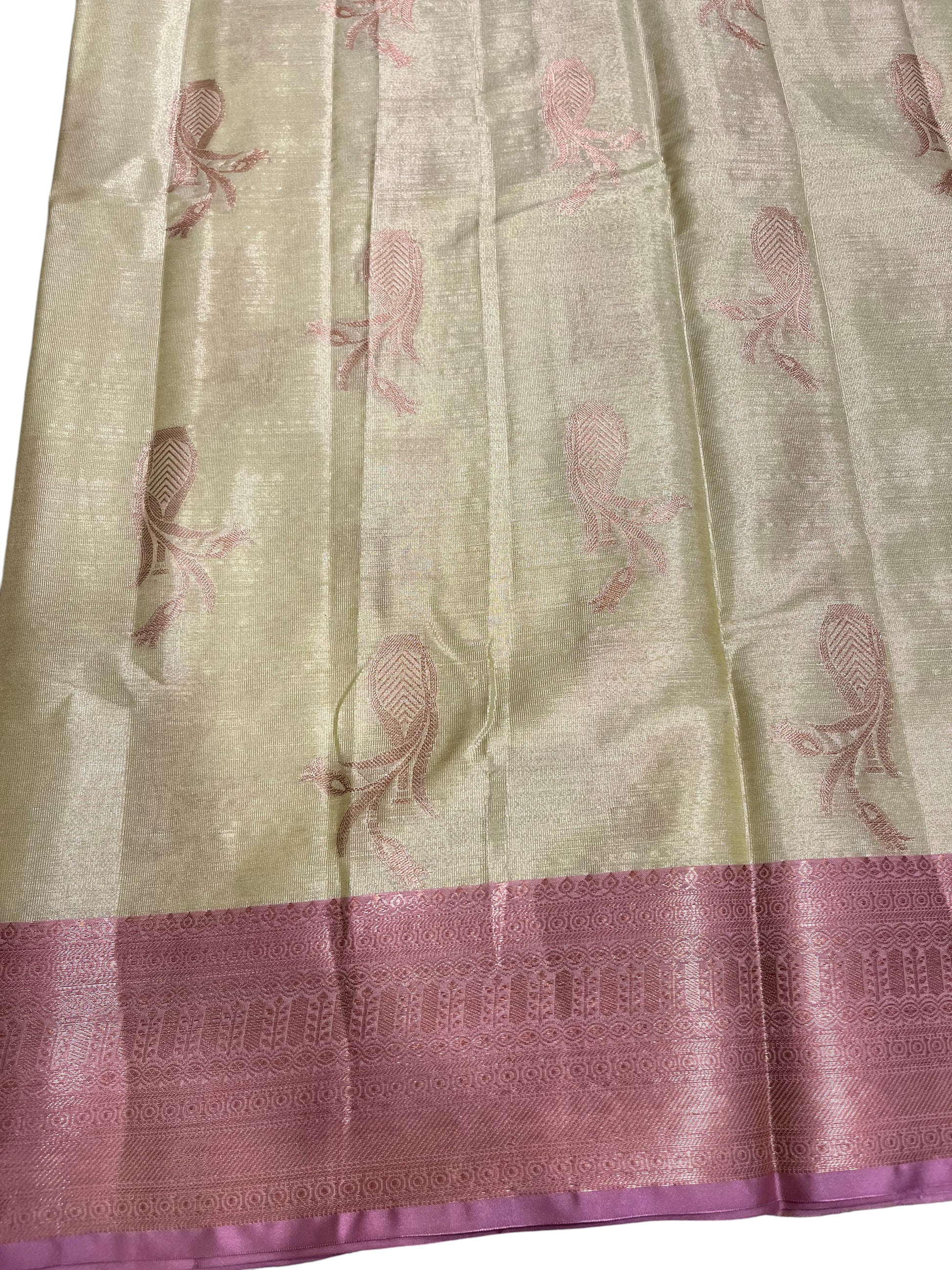 Southloom Tissue Silk Saree with Woven Work on Body and Borders (Pink & Green)