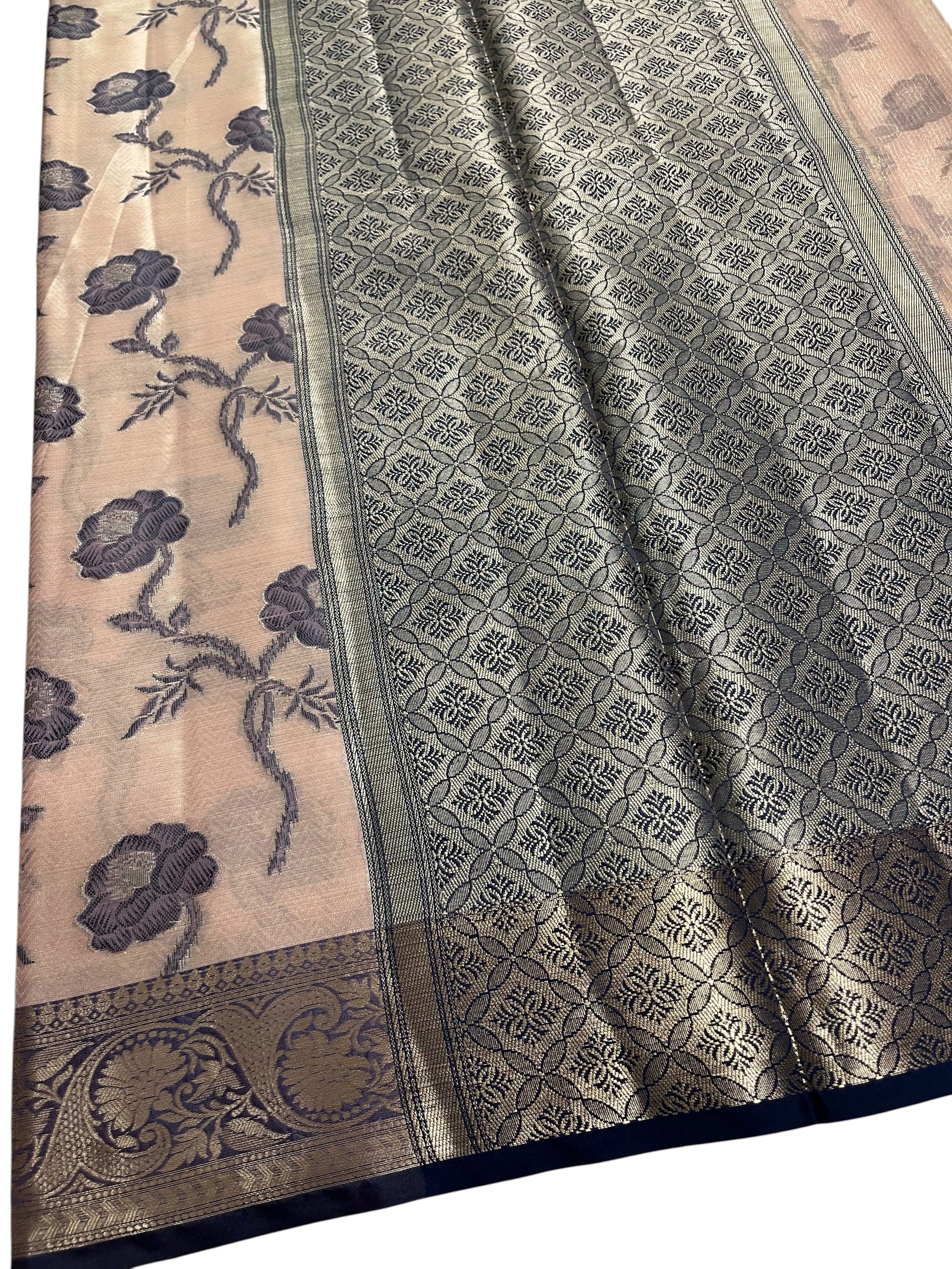Southloom Tissue Silk Saree with Woven Work on Body and Borders (Pink & Blue)