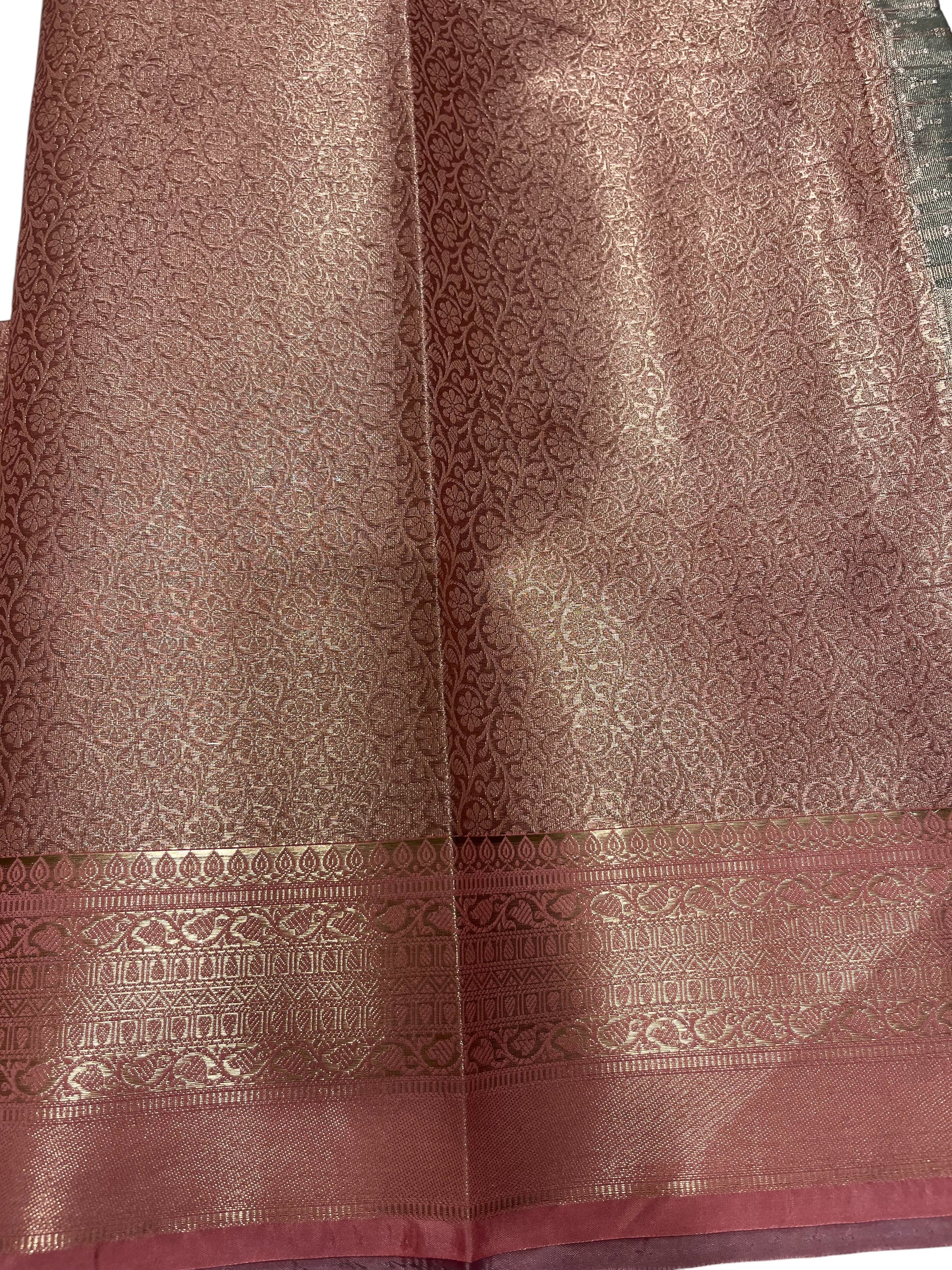 Southloom Tissue Silk Saree with Woven Work on Body and Borders (Pink & Grey)