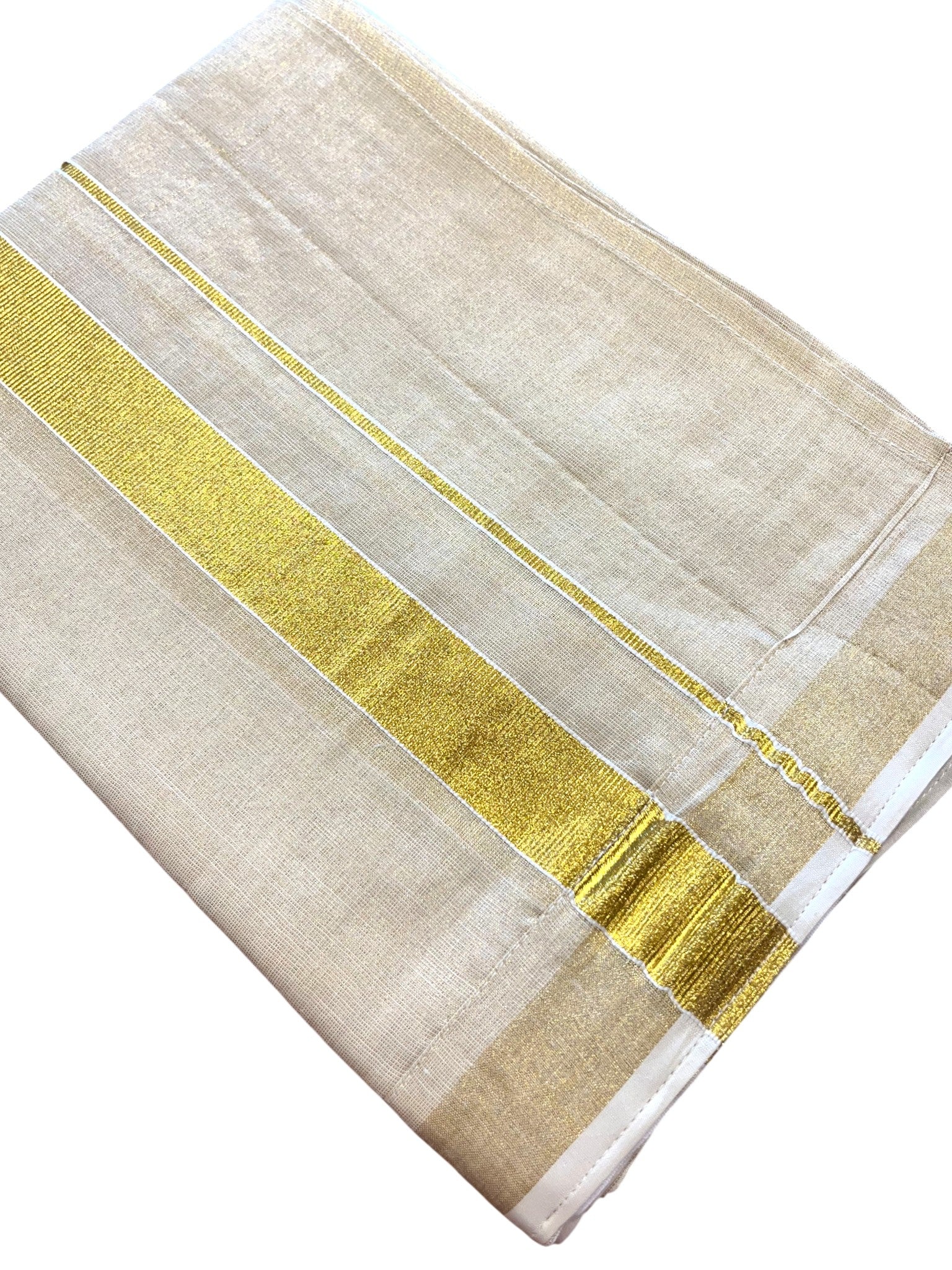 Southloom Kerala Tissue VELCRO Single Mundu with Gold Kasavu Border (South Indian Kerala Dhoti)