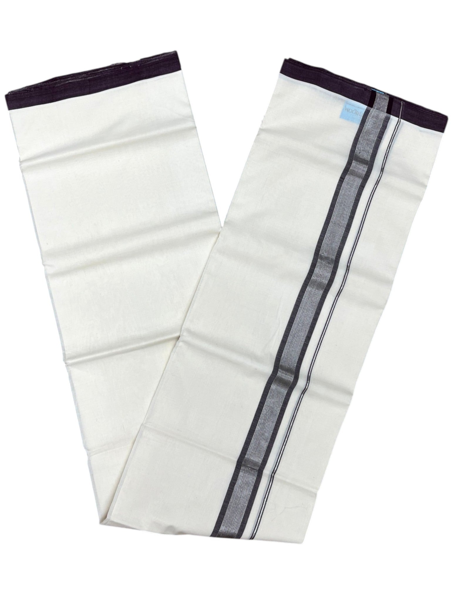 Southloom Unakkupaavu Premium Handloom Cotton Double Mundu with Silver Kasavu and Purple Border
