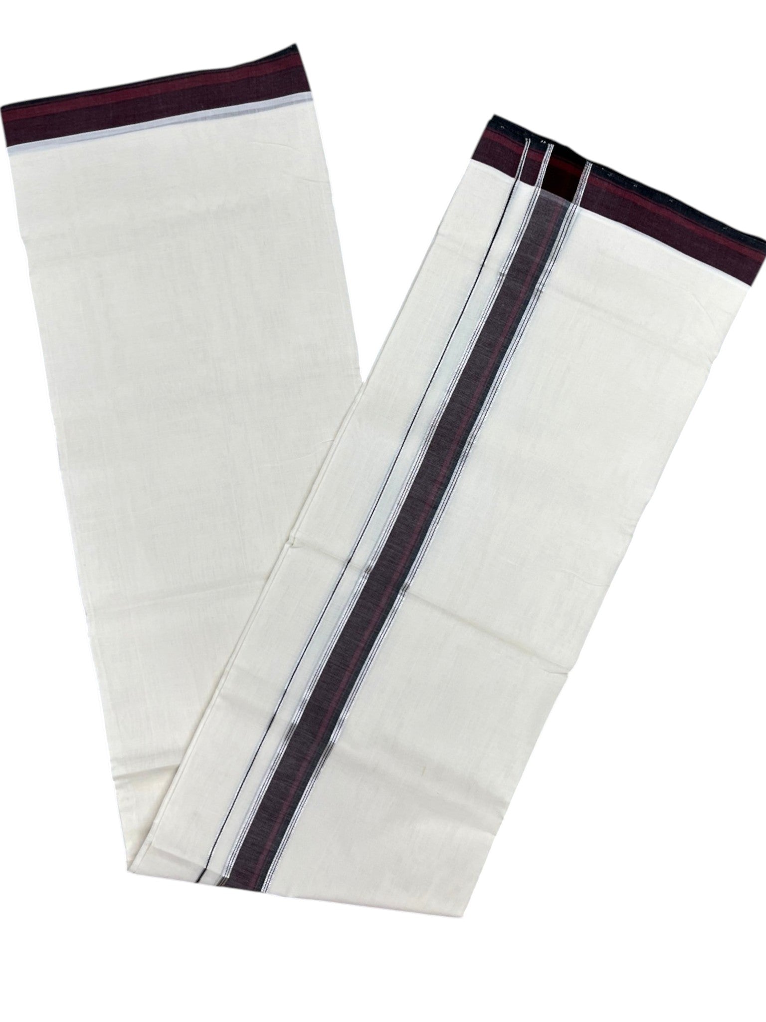 Southloom Unakkupaavu Premium Handloom Cotton Double Mundu with Silver Kasavu and Maroon Border