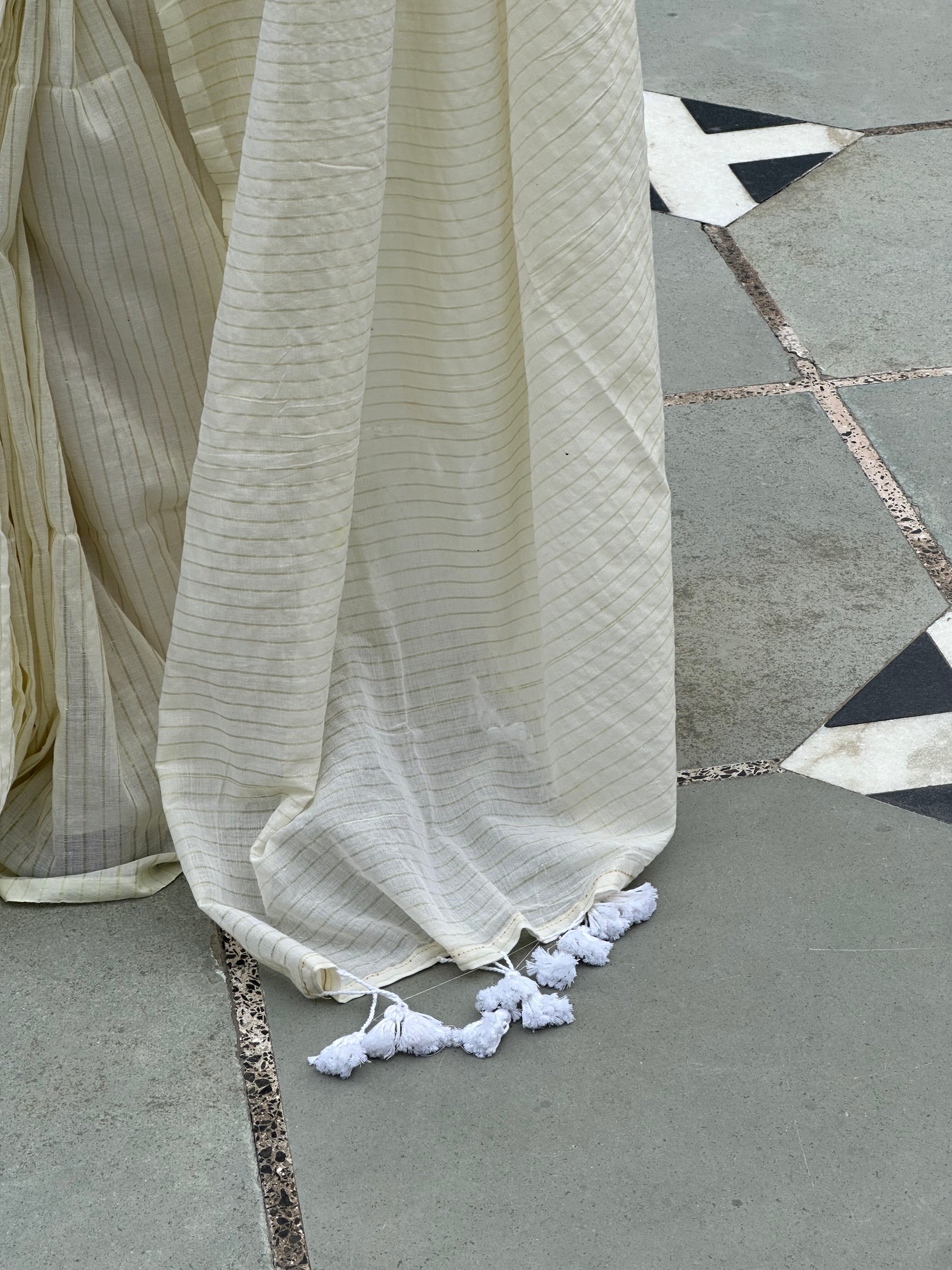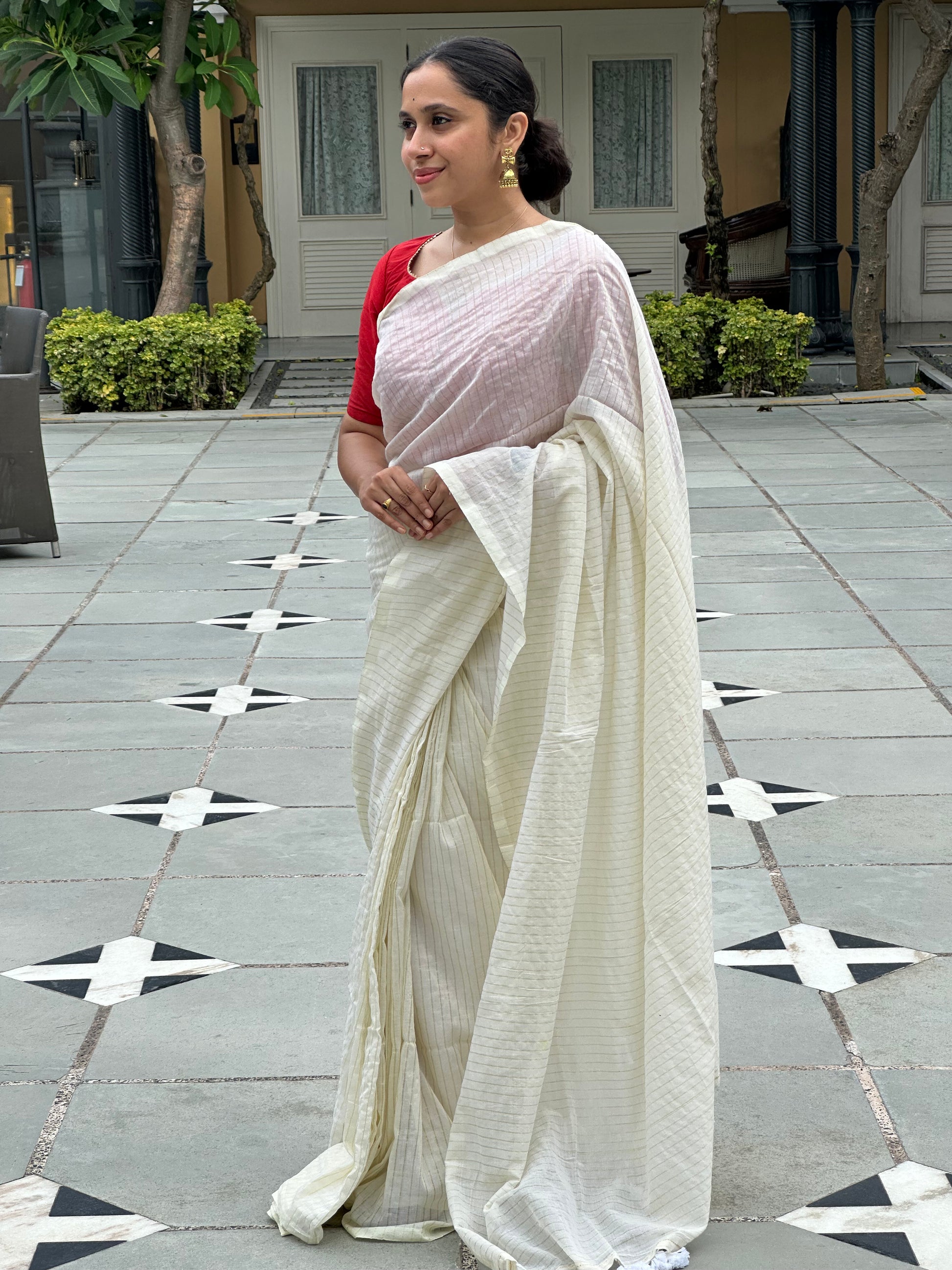 Southloom Zari Lines Mul Cotton 120 x 120 Soft Fabric Onam Saree